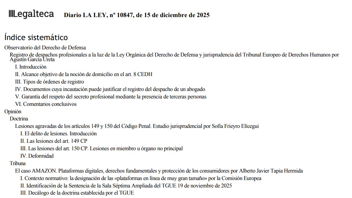 Diario LA LEY. Número 10847, 15 de diciembre de 2025